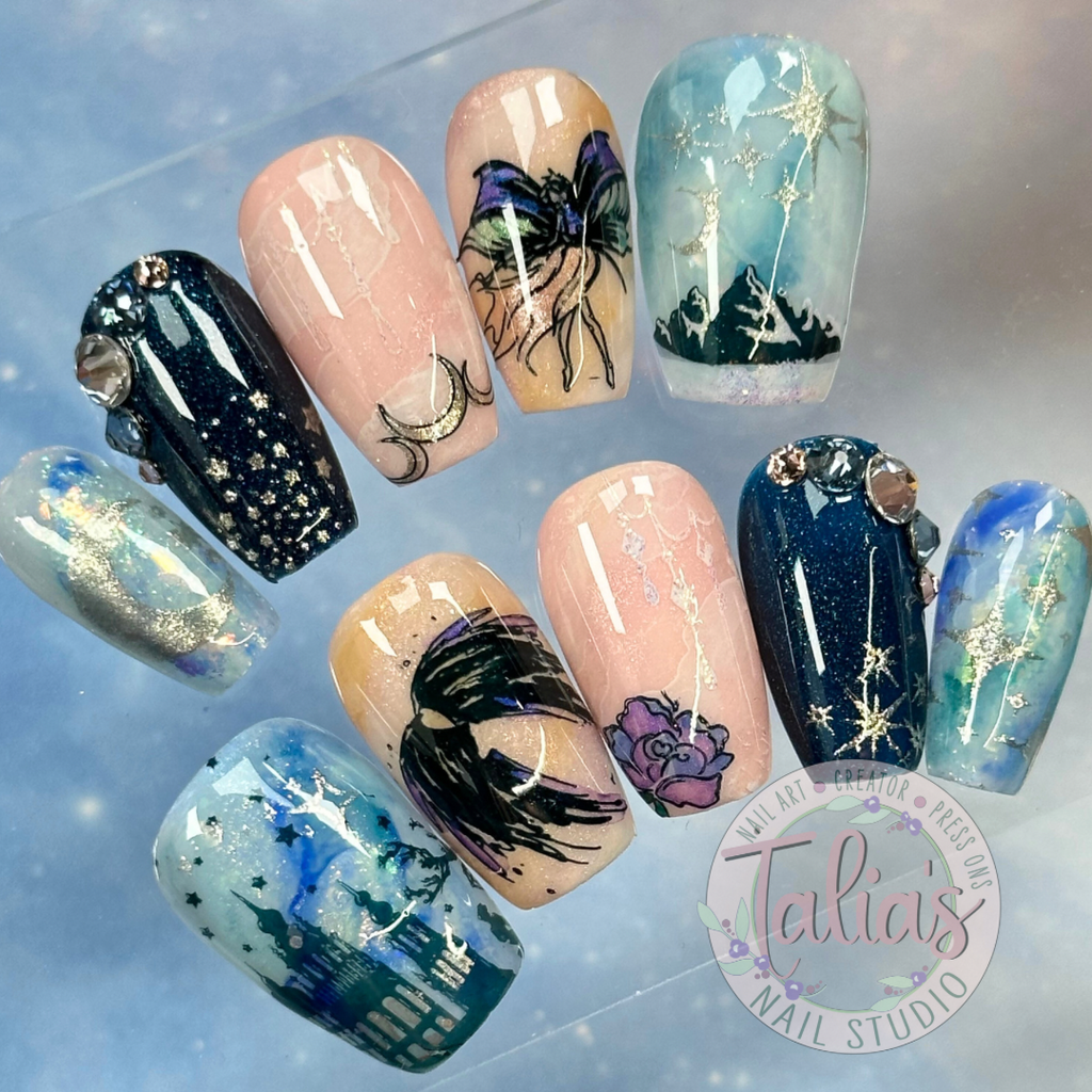 Show off your fandom with Character Press-On Nails from Talia’s Nail Studio! Each set is handcrafted and fully customizable, inspired by your favorite movies, TV shows, books, video games, or beloved characters. Whether you want subtle nods to your favorite characters or bold, full-themed designs, these nails let you express your personality in a fun, creative way.