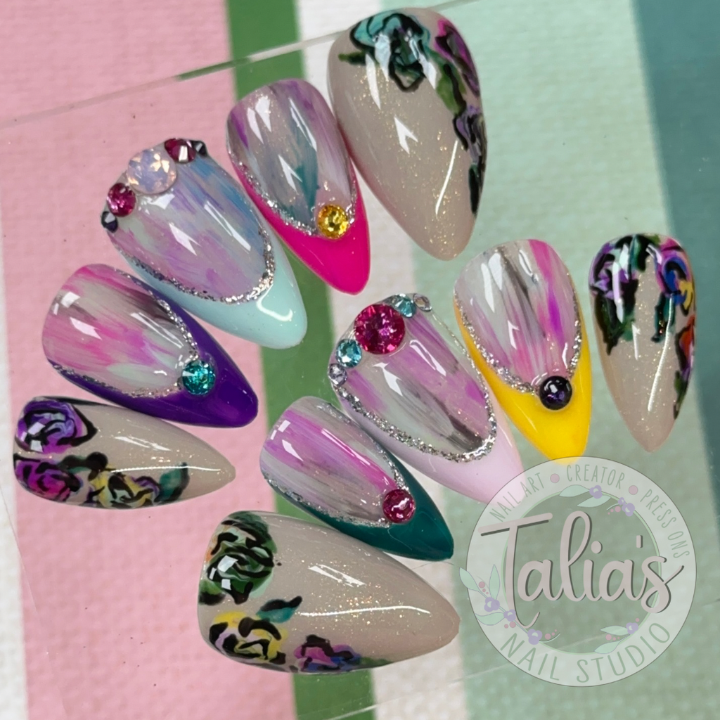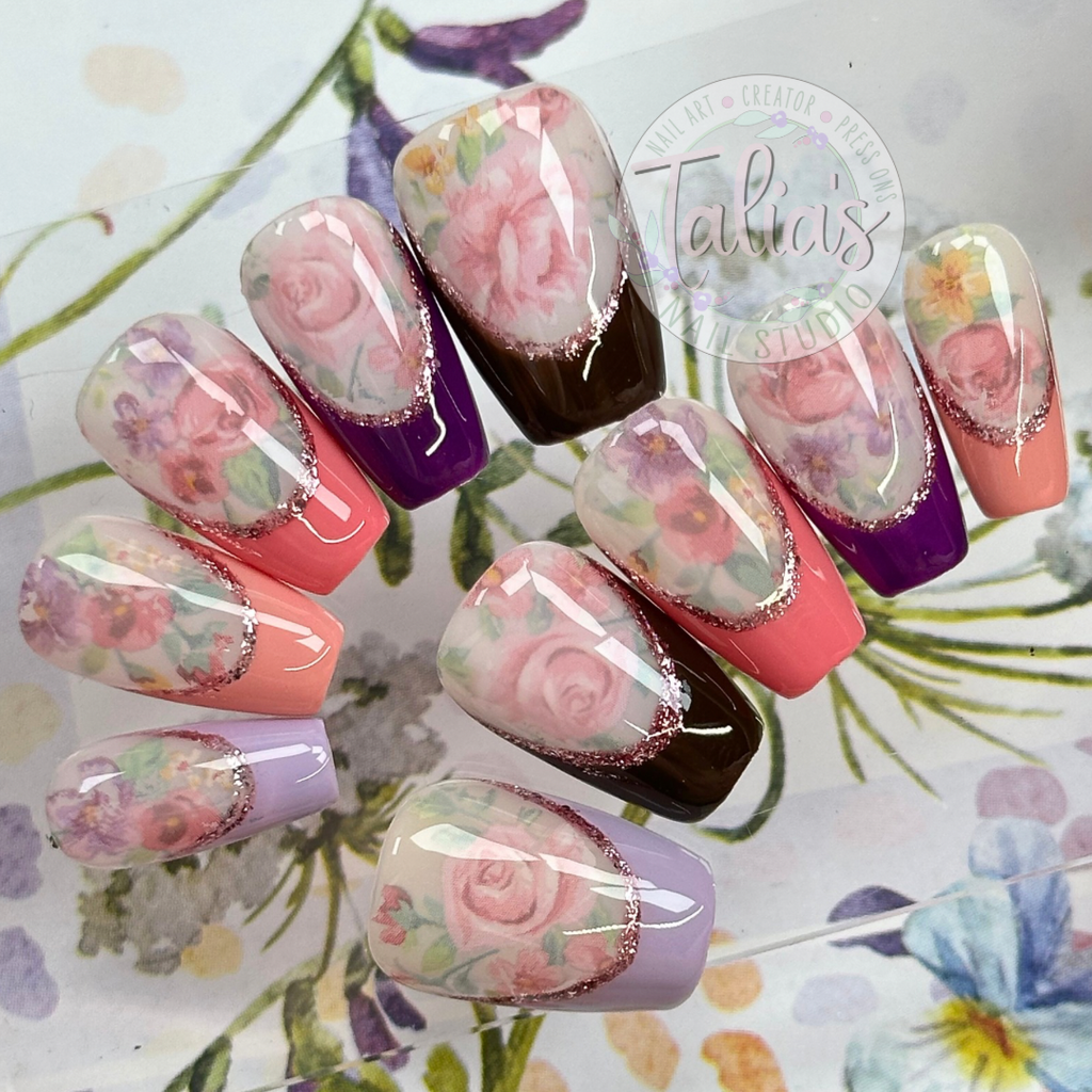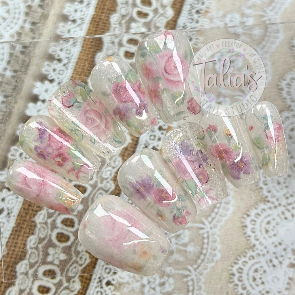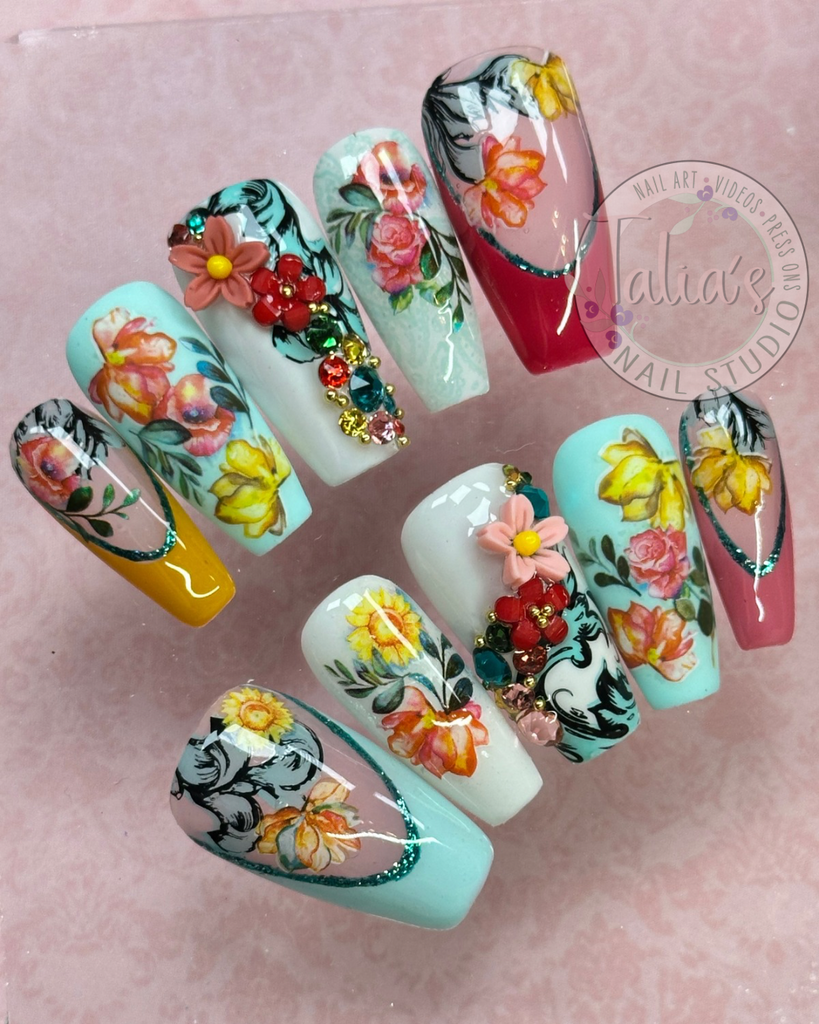 From delicate watercolor flowers and romantic rose accents to bold, colorful floral patterns, these press-on nails are perfect for weddings, spring and summer events, special occasions, or simply brightening your everyday style.
